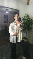 This neutral colored button up features a light weight feel and a star detailing on the back. This is a neutral lovers dream and a must have!!