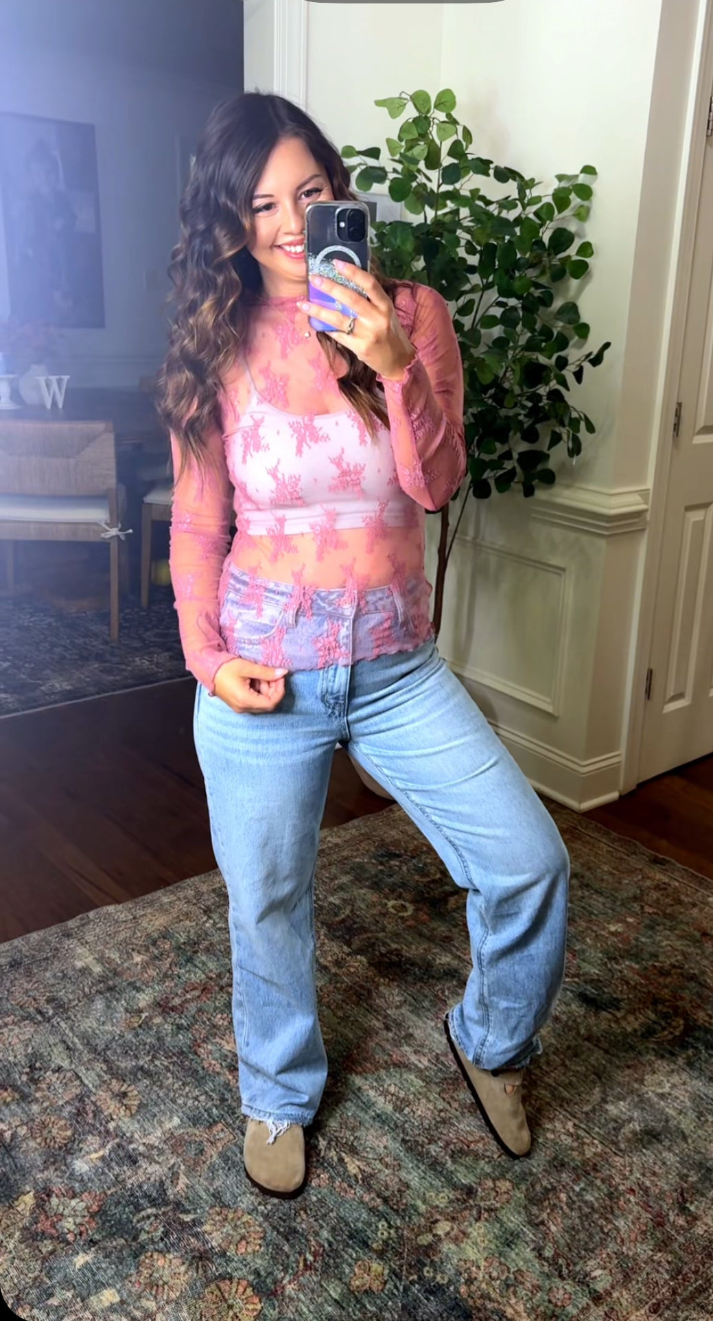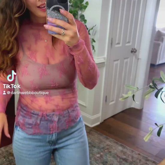 This beautiful lace mesh top is featured in a cocoa brown making this perfect for fall! Pair this under a graphic tee, under a sweater vest as pictured, or alone!