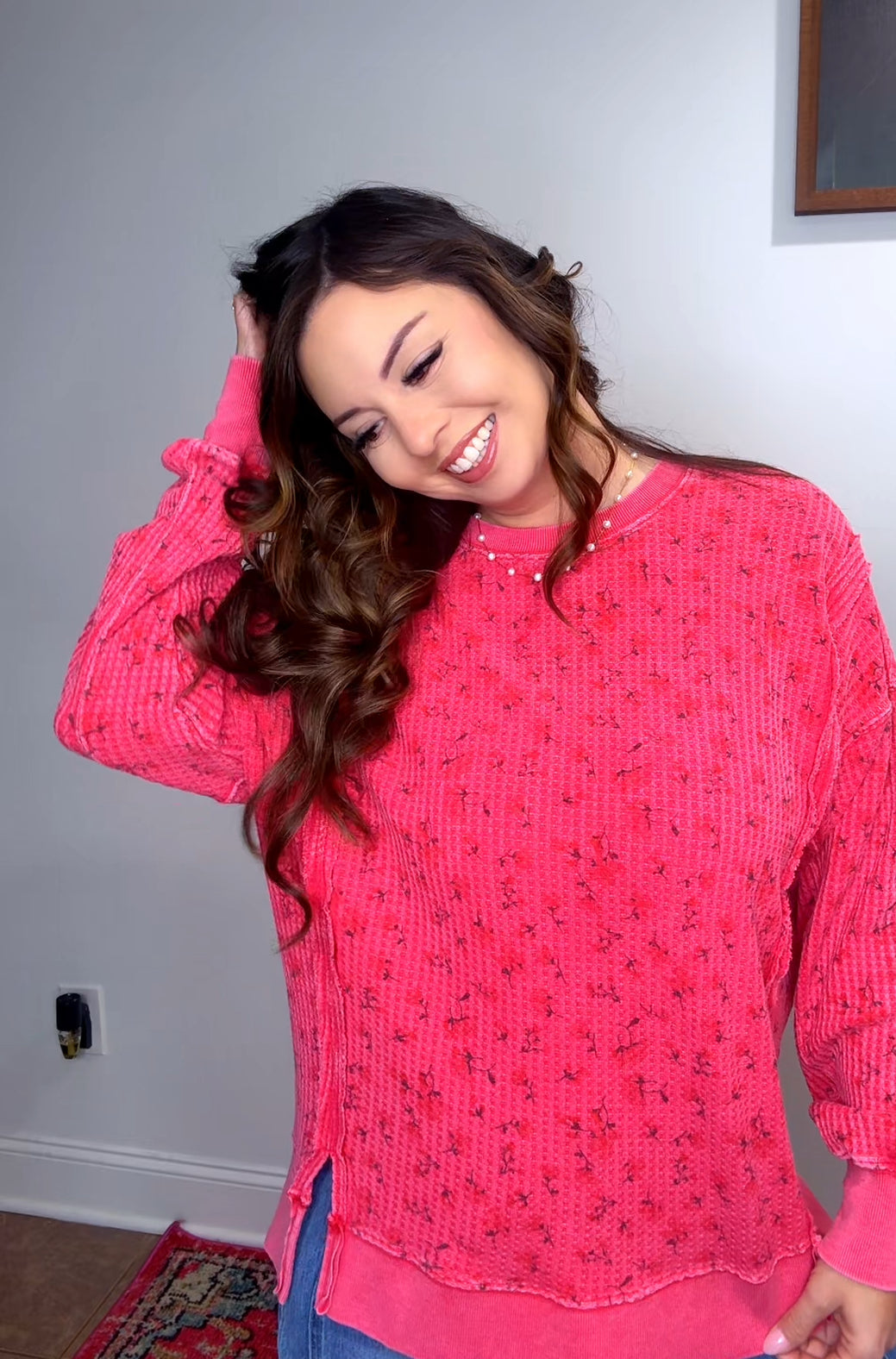 Fit: loose and relaxed, Shelby is wearing her true size small