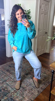 Our Darlings love these pullovers offering a terry cloth light weight feel and two front slits allowing the top to move with you! You can't go wrong with these two shades of blueish greens.