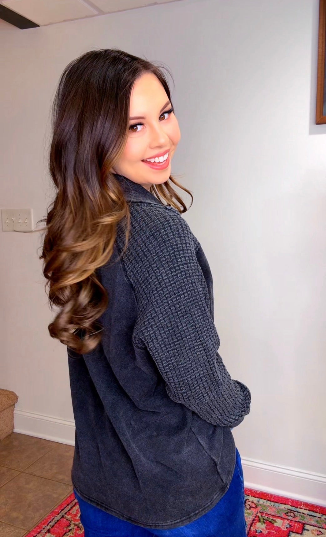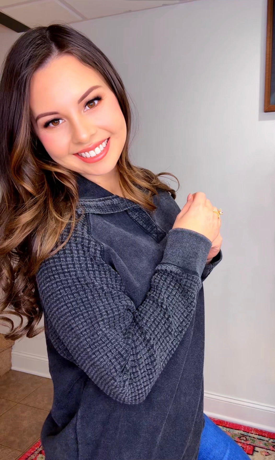 Effortlessly versatile and endlessly comfortable, the Duality Waffle Knit Henley is your go-to layering essential. Designed with a soft, textured waffle knit fabric, this top offers a relaxed yet flattering fit that moves with you throughout the day. Classic Henley button detailing adds a timeless touch, while the lightweight feel makes it perfect for year-round wear. Dress it up with denim and boots or keep it casual with leggings for an easy, everyday look. Whether you’re running errands or lounging in style, this piece blends comfort and modern charm seamlessly.