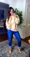 This light weight terry feel hoodie is giving us POL vibes but without the POL price tag! Pair this with your favorite comfy leggings or a cute pair of jeans for a trendy fall look.