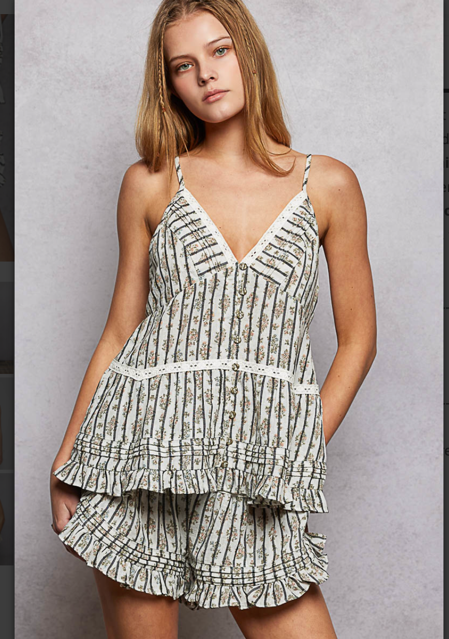 A soft, feminine ivory tank top adorned with delicate floral detailing that brings effortless romance to any outfit. This piece blends a light, airy feel with boutique‑level charm, making it perfect for layering or wearing on its own. Its subtle florals add just enough texture to elevate your everyday look while keeping things clean and timeless.
