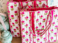 Showcasing our stunning Magnolia Floral print in beautiful pink and green hues, this tote is a timeless statement piece. Finished with our signature logo, it embodies effortless grace and sophistication.