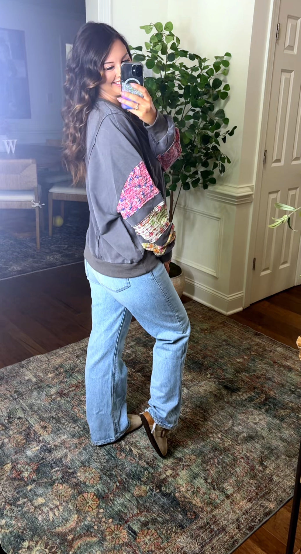 Fit: loose and relaxed, Shelby is wearing her true size small