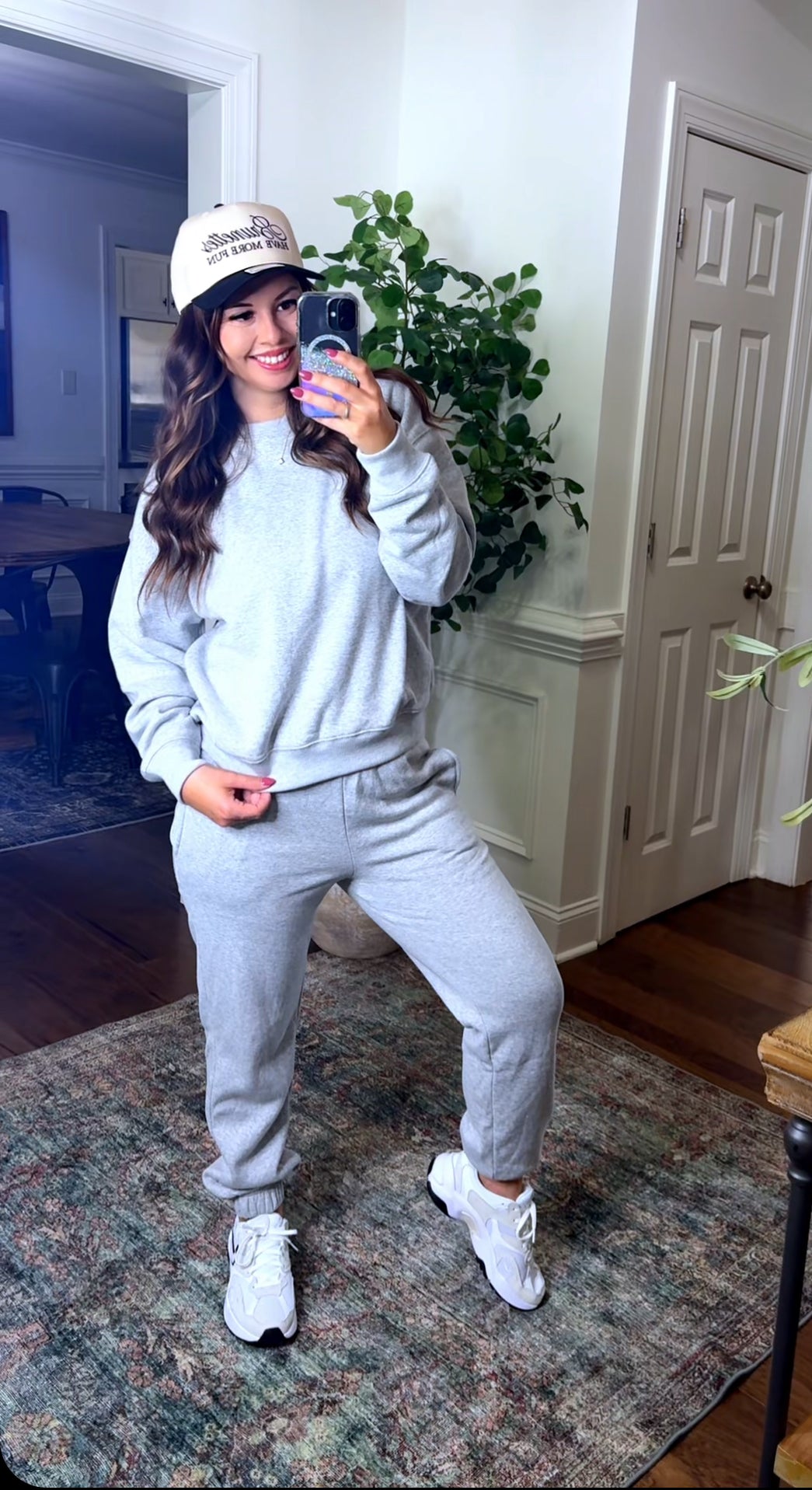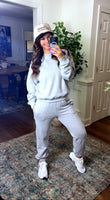 Our on the go set features a jogger style pant with a crewneck pullover and a fleece lining for both. You can't go wrong with this set for those busy days or those days you just feel like lounging but still want to be trendy.