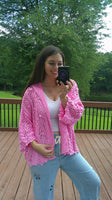 This soft to touch cardigan features a lightweight feel and a hood adding a pop of detail. Throw this on with our daisy lane jeans for a cute transitional piece and add some color to that wardrobe.