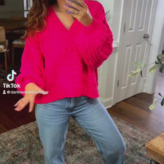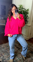 This chenille sweater offers a soft to touch feel and is offered in a beautiful hot pink color! Throw this sweater on with your go to denim for a cute casual trendy look.