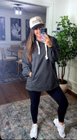 We all love a good pullover that we can throw on and go. This pullover features a front pocket and hood. Pair this with leggings and your go to hat for a cute on the go look.