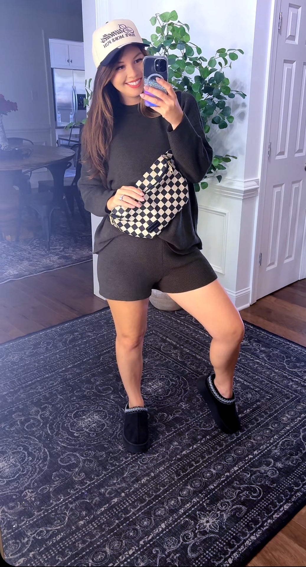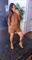 This is the set of fall darlings features a 3/4 sleeve top with shorts consisting of a light weight sweater feel and giving the perfect versatility to dress up for a date night or down for a cute casual day out.