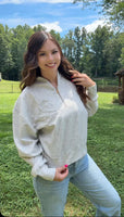 This scuba material pullover is featured in a gray coloring accompanied with a gold quarter zip! Classy yet still able to be dressed up or down for a cute trendy look.