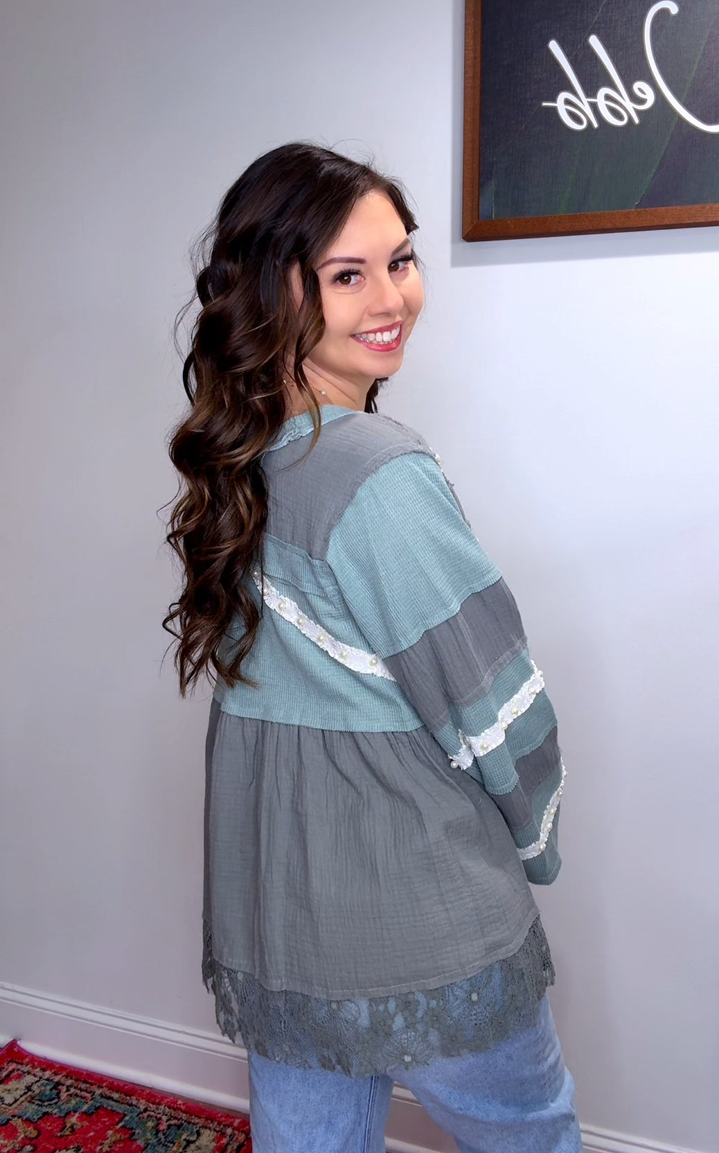 Fit: loose and relaxed, Shelby is wearing her true size small